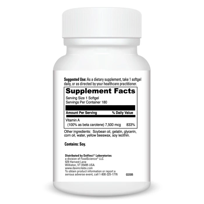 Beta Carotene by DaVinci Labs is a high-quality antioxidant supplement that supports healthy vision, immune function, and skin health. Beta-carotene is a naturally occurring provitamin A carotenoid, meaning the body can convert it into vitamin A as needed. This makes it a smart option for people looking for daily antioxidant support, cellular wellness, and nutrient support for eye and skin health—without taking high-dose preformed vitamin A.
