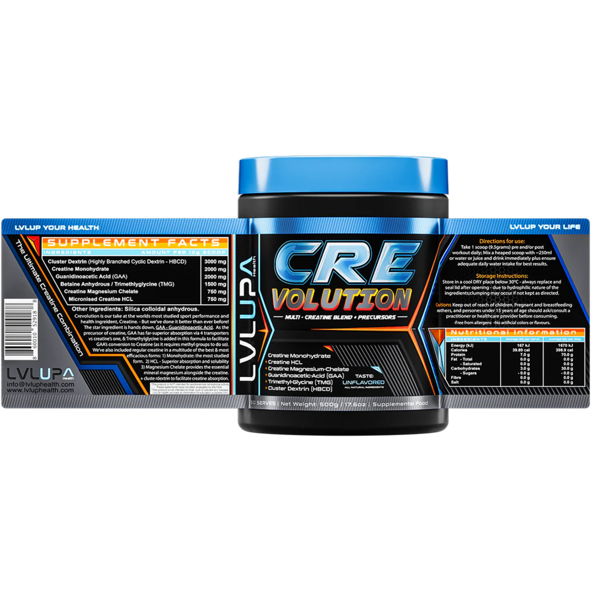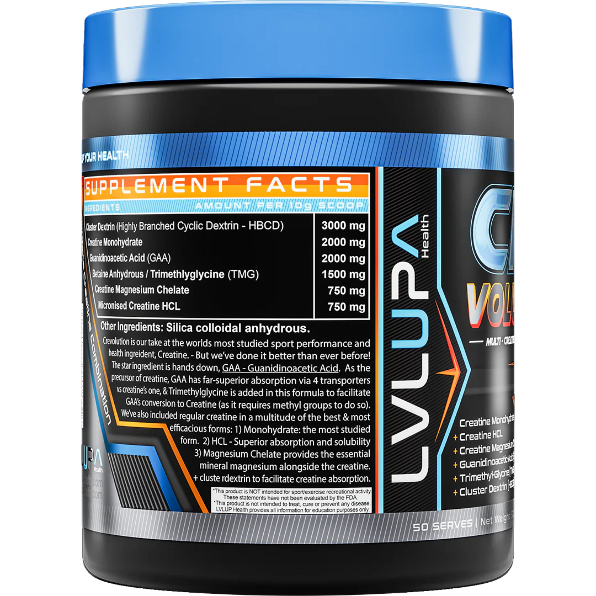 Introducing Crevolution by LVLUP Health - the ultimate fitness supplement that takes creatine to the next level. By combining the most studied form, Creatine monohydrate, with highly effective forms (Creatine HCl and Creatine Magnesium-chelate), and adding Highly Branched Cluster Dextrin (HBCD), absorption and performance are optimized for a more efficient workout.