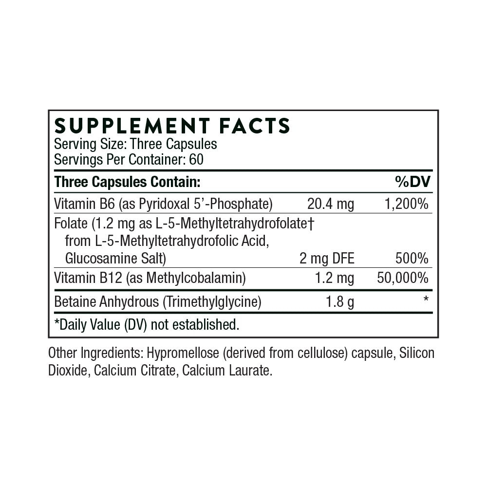 Methyl-Guard® Capsules are formulated using active, tissue-ready forms of B vitamins, making them especially suitable for individuals who may have difficulty converting standard vitamin forms. Thorne’s science-backed approach emphasizes purity, absorption, and clinical relevance, making this supplement a trusted choice among healthcare practitioners.