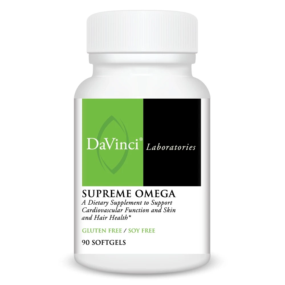 Supreme Omega by DaVinci® Labs is a high-quality omega-3 fish oil supplement formulated to support heart health, brain function, joint mobility, and overall wellness. Each serving delivers purified EPA and DHA essential fatty acids sourced from quality-controlled fish oil to help maintain healthy inflammation balance, cognitive performance, and cardiovascular support.